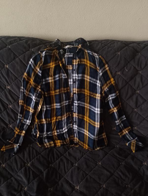 F&f рубашка картата, розмір 10(38), стан дуже хороший, на плечі є невелика дирочка Рукав від плеча 66 Довжина 69 Напівобхват грудей 52 Напівобхват по плечах 39 Напівобхват внизу 54