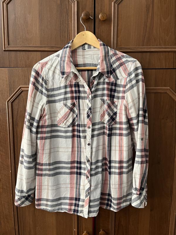 Очень в хорошем состоянии. Женская рубашка в клетку. Размер Л. Возврату не подлежит. Без пятен