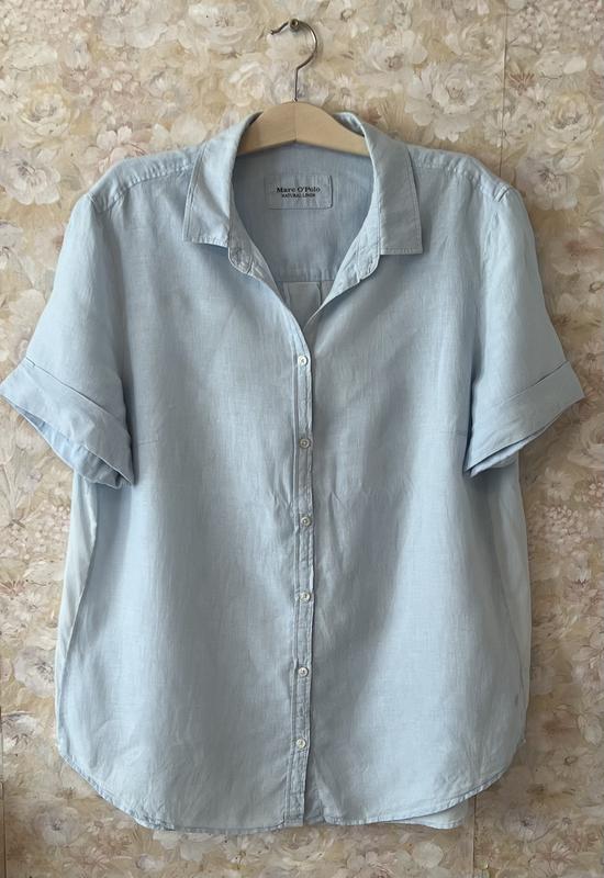 стильная рубашка комбинированный лен впереди котон сзади , легкая дышащая