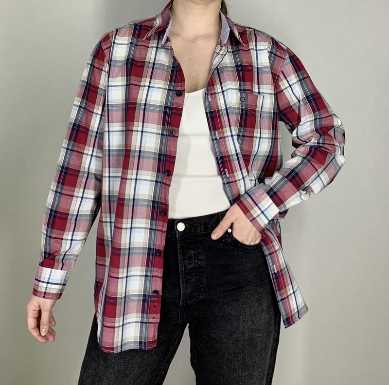 Картата сорочка Розмір Л Бірка зрізана, на дотик- катон Довжина 75 см, довжина рукава 61 см, напівобхват грудей 59 см Стан ідеал Вдягнуто на розмір Л, зріст 167