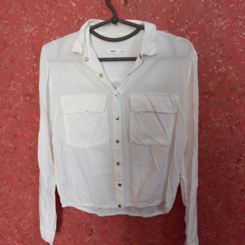 На кнопках, низ резинка плечи 40 объем груди 50 длина спереди 50 Сзади 55 длина рукава 57