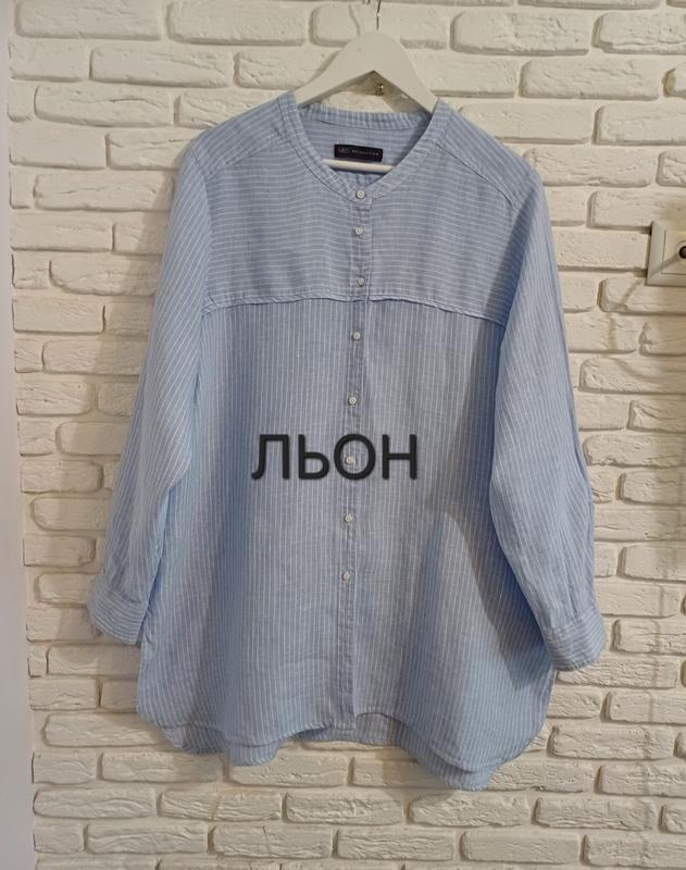 Красивая качественная рубашка прямого силуэта без ворота с разрезами по бокам размер указан 20.деется на меньше по плечам на 16-18,Плечи 45см.ПОГ68см.длина изделия 83см.длина рукава 62см.пройма 32см.