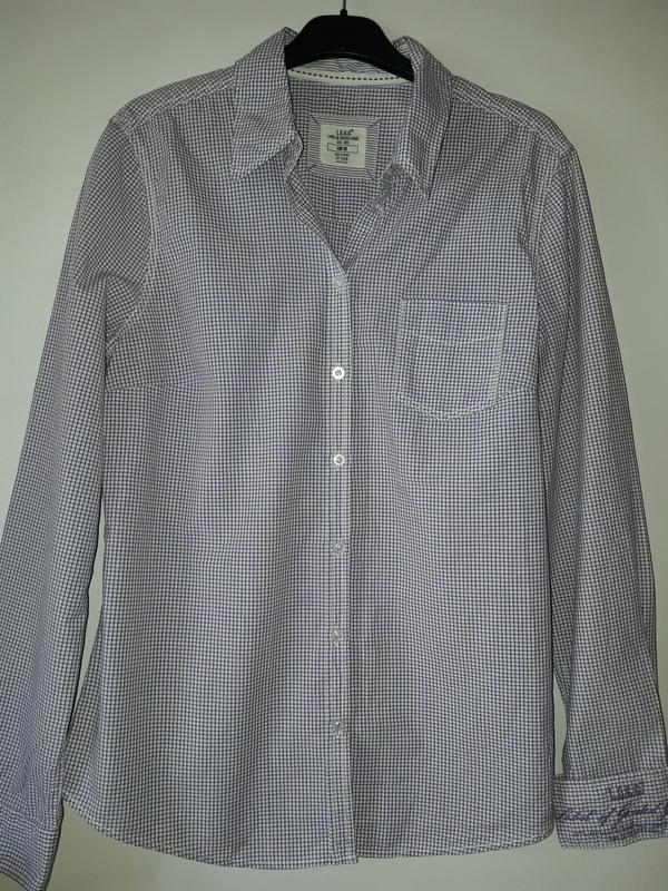 Рубашка H&M размерМ- L, классический крой с вытачками и кокеткой, в живую выглядит значительно лучше, белая в фиолетовую сетку, пог 47см, длина 65 см.