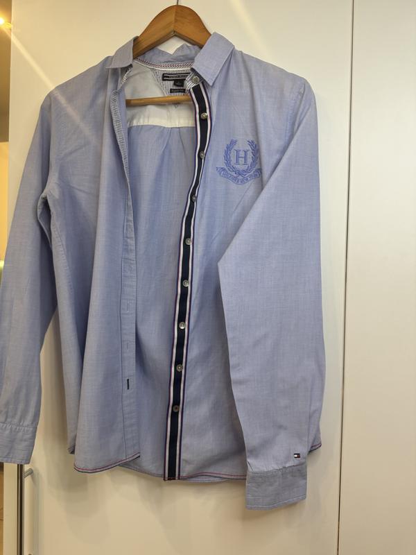 Женская рубашка голубого цвета, одетая несколько раз, большая по размеру. Только оригинал! Гортай новинки и обязательно найдешь предложение именно для себя ❤️