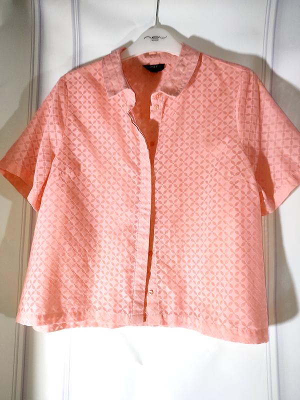 Укороченного кроя рубашка, росм 8, на м, длиж 53 пог 50 ширина по низу 57