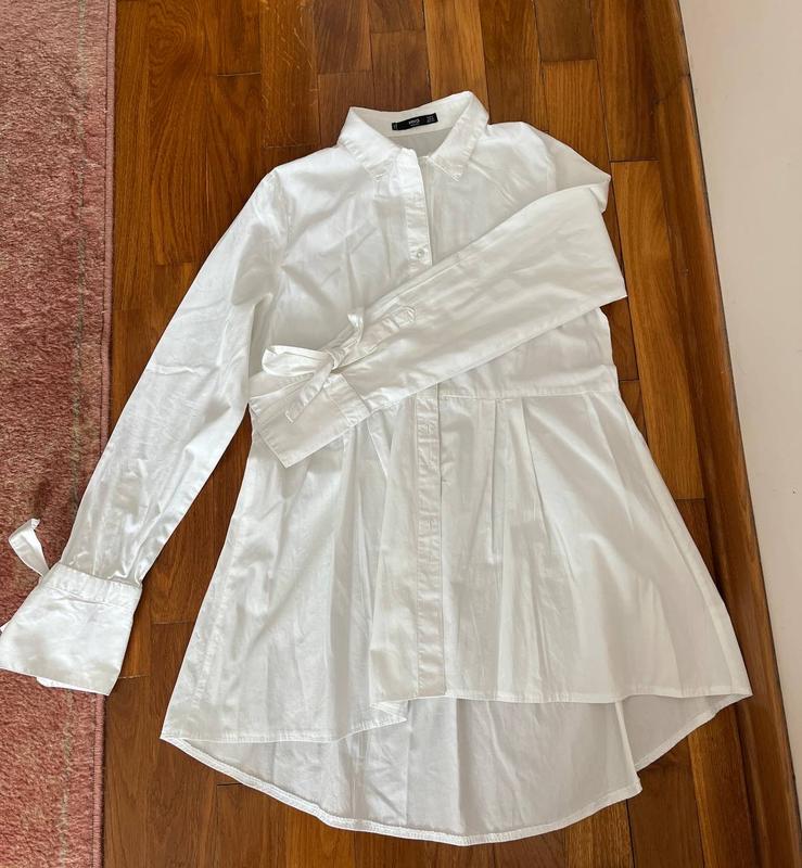 Біла сорочка Mango, задня частина довша за передню, рукави на завʼязку, розмір S, 100% бавовна, 300 грн