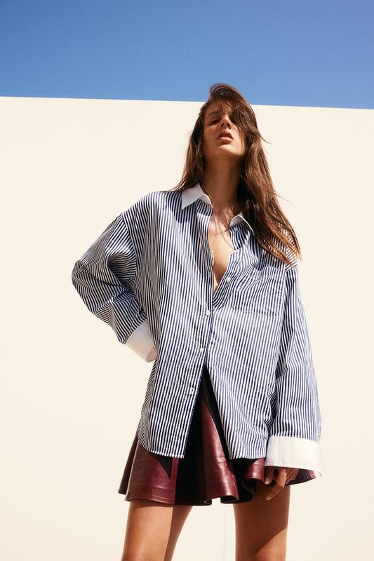 Цена 1180 📌Новая коллекция📌 100% бавовна Немного удлиненная рубашка с воротником, пуговицами спереди и открытым верхним карманом. Двухслойная задняя кокетка с перевернутой коробчатой сборкой и петлей для ремня. Модель оверсайз с заметно спущенными плечами, длинными рукавами с регулируемой застежкой на манжетах и кнопками. Закругленный подол. Артикул: 1239275004 HM