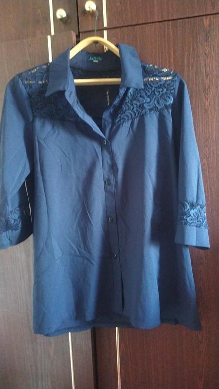рубашка темно синего цвета, украшена гипюром, состояние идеальное, размер 50- 52.