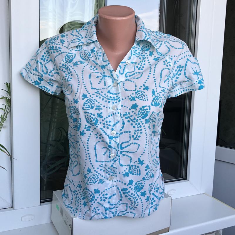Сорочка має склад – 100% катон, гарно підійде на спекотне літо. Якісний матеріал та пошив. Розмір S. Не довга, фасон приталений, класичний, застібається на ґудзики.