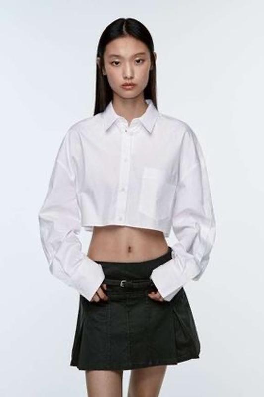 Стильная укороченная рубашка от ZARA. Размер Хс, можно С. Смотрите все свои товары и делайте подписи 🌸🌸🌸