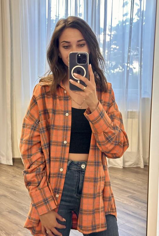 Трендовая рубашка свободного кроя со стильными манжетами. Качество отличное!