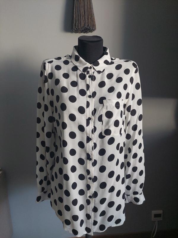 Сорочка в горох. Стан ідеальний, віскоза, вільний крій. Довжина 73-69см Рукав 60см спинка 38см по грудей 48см