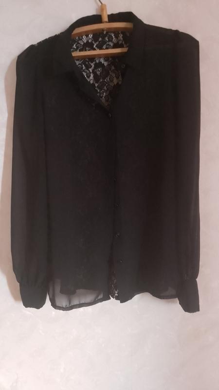 рубашка женская,черного насыщенного цвета, спереди прозрачная,перчата тоже, по спинке сеточно, рукава на пуговицах, очень нарядная, размер указан xl,но маломерит