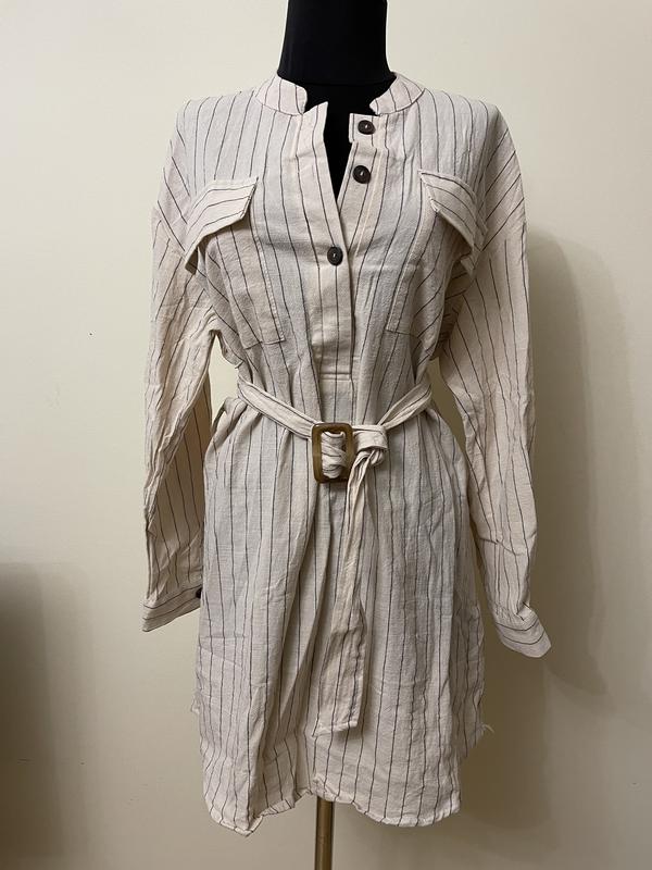 Женская рубашка молочного цвета в тоновую черную полоску, размер S. Бренд Aisabelle. Вискоза, на ощупь как коттон. Плечи 50 см, ПОГ 54 см, ПОС 54 см, длина 83 см, рукав 50 см, от горловины 67 см. Новая, без дефектов.