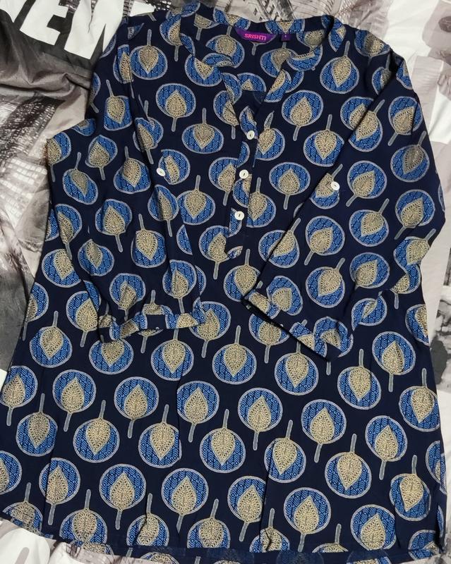 блузка/ рубашка 3/4 есть пуговки чтобы сократить рукавчики производство Индия натуральная ткань искусственный шелк плечи 41 пог 53 пот 47 по низу 56 длина 67