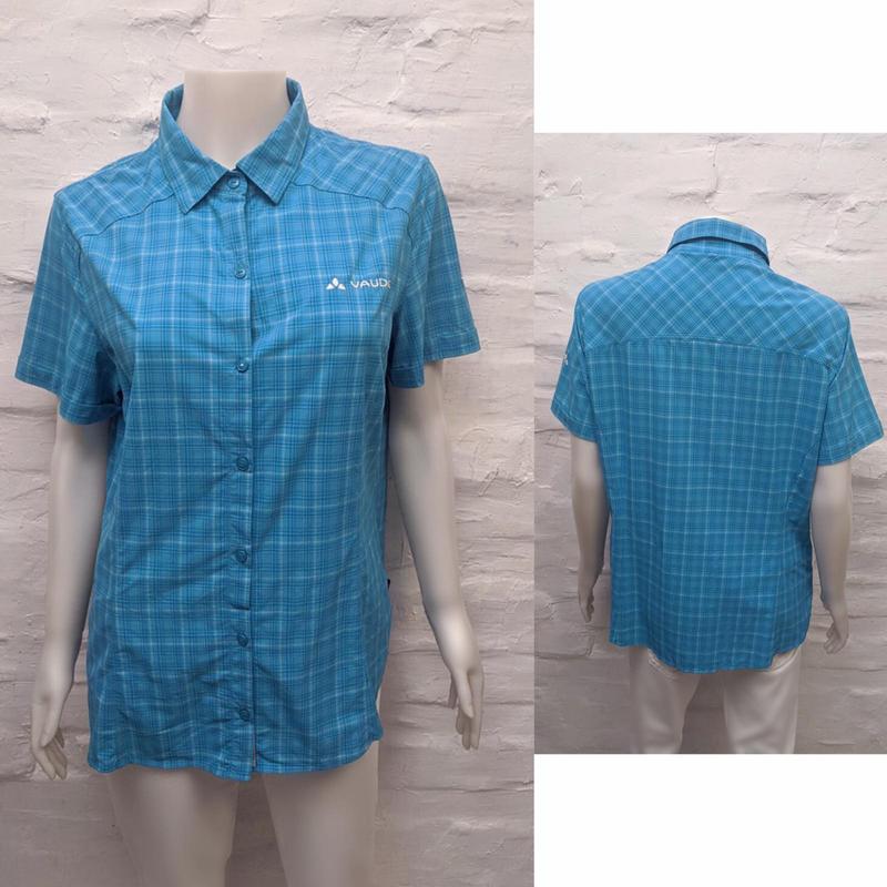Vaude green shape яркая оригинальная трекинговая рубашка для путешествий бирюзового цвета...
