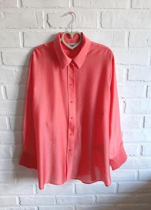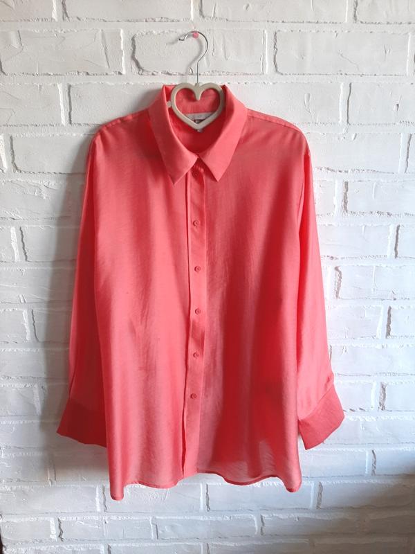 Яркая рубашка H&M, лососевого цвета, свободного кроя, легкая ткань, размер L XL, в идеальном состоянии ПГ - 62 см, ШП - 46 см, длина рукава - 61 см, длина - 78 см