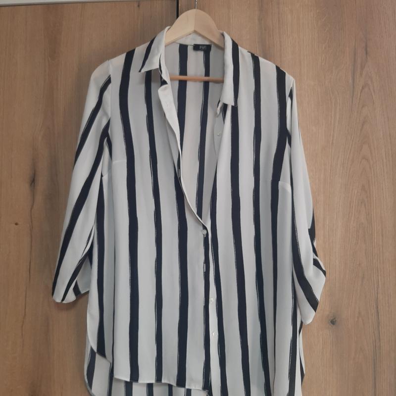 удлиненная рубашка в полоску, в красивом состоянии, длина рукава регулируется. Размер 48-50