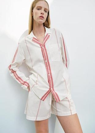 Полосканая рубашка оверсайз Zara с длинными рукавами Склад: 91% бавовна 9% льон Размер: S Замеры: * плечи - реглан, * ПОГ — 55 см, * длина - 64,5 см, * рукав от горловины - 76 см