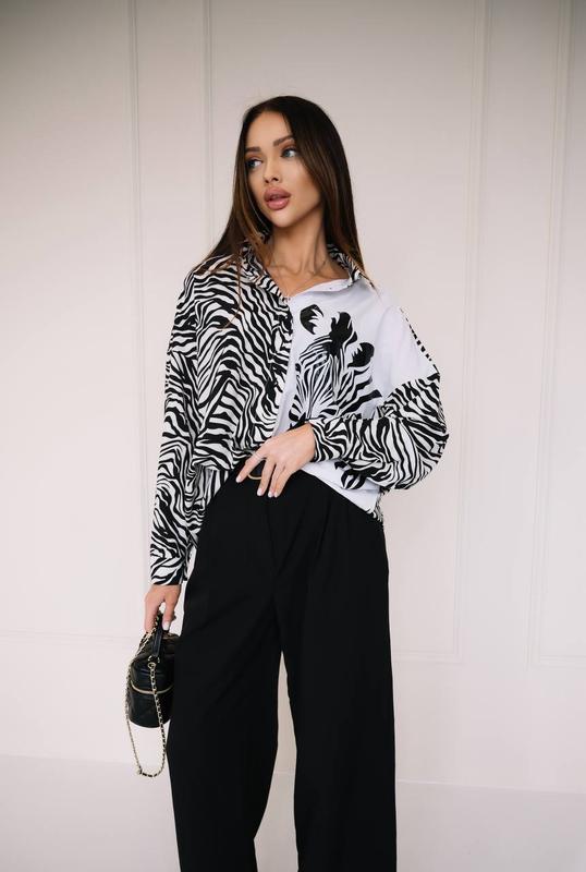 Сорочка😌😌😌 Модель : 324 Тканина : софт принт/софт Размер : единственный 42-46(на 48 также подходит) Цвет: принт зебры 🦓 новая Цена: 595 гр Хороший накат 👍 Замеры Длина по спинке - 76 см Рукав (спущенный) - 45 см Плече(спущене) - 30 см Объемы до 115-120 см Рост модели на фото 173 см😎😘 Ог -84 см🥰 От -63 см🥰 Ос -89 см🥰 Размер на моделе 42-44 код20-1965(ТЯц)
