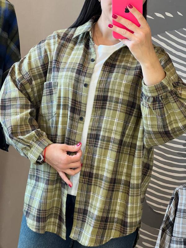 удобная, стильная и универсальная рубашка в клетку - наша любимая деталь одежды в текущем сезоне, она отлично сочетается с одеждой нашего гардероба, благодаря миксу цветов на ней, ее можно надевать, как кардиган под футболку или майку, она легко сочетается с джинсами, лосинами, шортами и брюками разных цветов и стилей. рубашка прямого кроя с небольшими вырезами по бокам, отложным воротником, спущенными рукавами на манжете и пуговицах спереди, выполнена из качественной теплой фланели, приятной к телу, она выглядит классно и легка в уходе, в ней комфортно и уютно, рубашку в клетку вы легко можете надеть на работу, учебу, пикник с друзьями или романтическое свидание размер оверсайз 46-52 длина 74- 79 см спинка длиннее передней части, объем груди по изделию 130-132 см, длина рукава от шеи 69-70 см код 0605-2