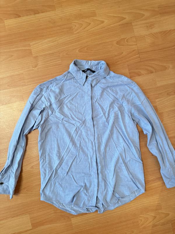 Рубашка зара в нежно голубом цвете, пуговицы скрытого пошива