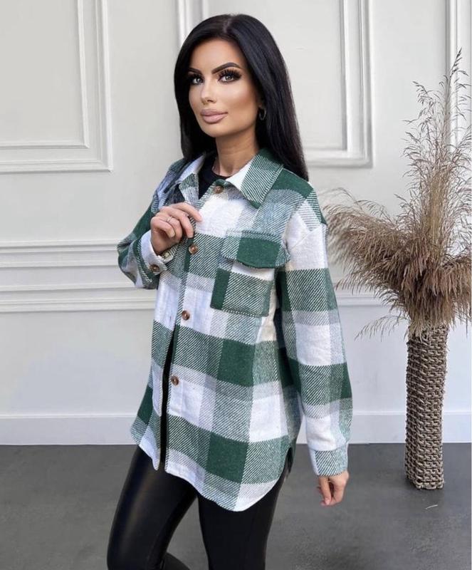 Тепла рубашка, зеленого кольору. Материал: турецкий кашемир Размеры: 42-46 42-46: ОГ 114 см, длина по спинке 72 см, длина рукава 73 см Очень стильная, оверсайз Идеальный вариант на осень