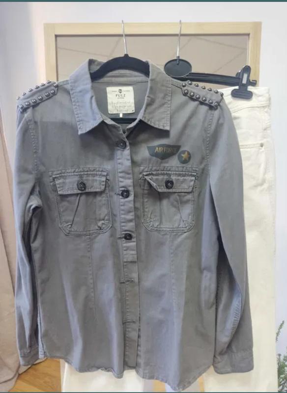 Рубашка из плотного коттона,серого цвета,в стиле милитари, размера М,стан новой