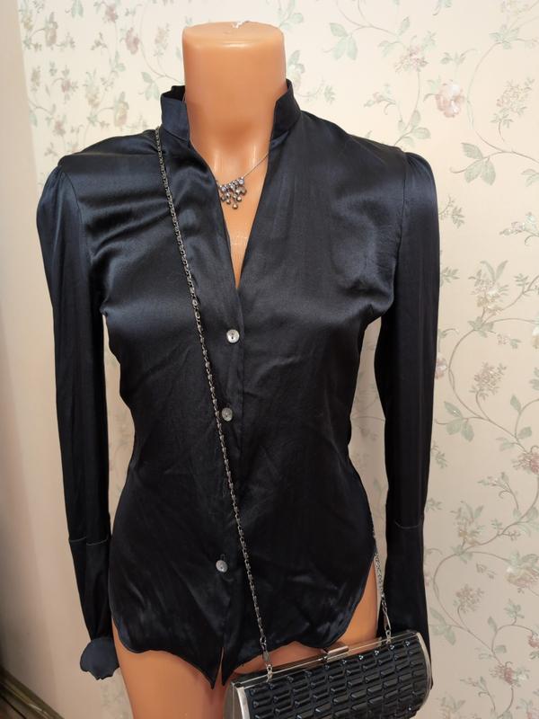 рубашка из шелка,стильная,высокие манжеты.Потребляю.От плеча до плеча 28 см, от подмышки до подмышки 39-40см,пот 35см,длина перед и зад 54см,бокая вырезаны более короткие,длина рукава от преча 60см