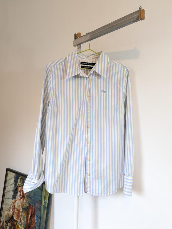 Идеальная рубашка, в языковто-голубой полоску размер M отлично сядет и на XS-S
