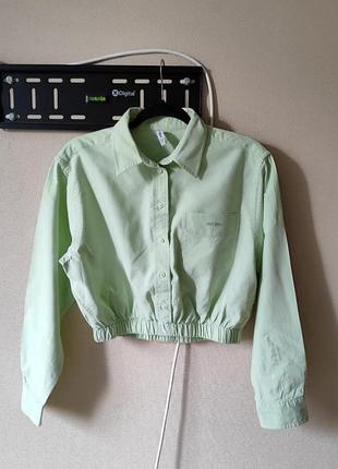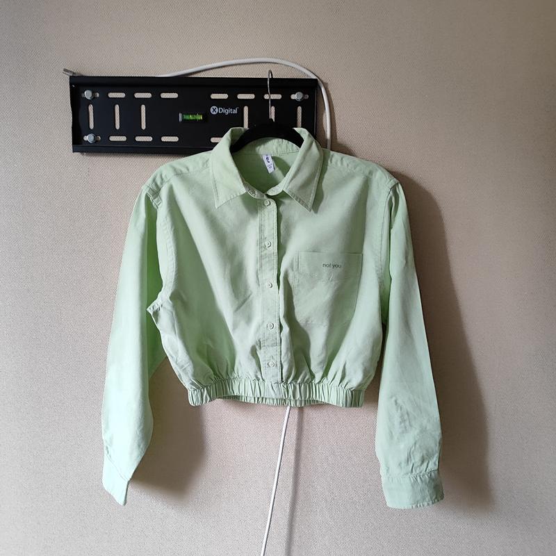 Коттоновая рубашка ментолового цвета.Пог-53,резинка-36,длина-44.Плече-15,рукав-58