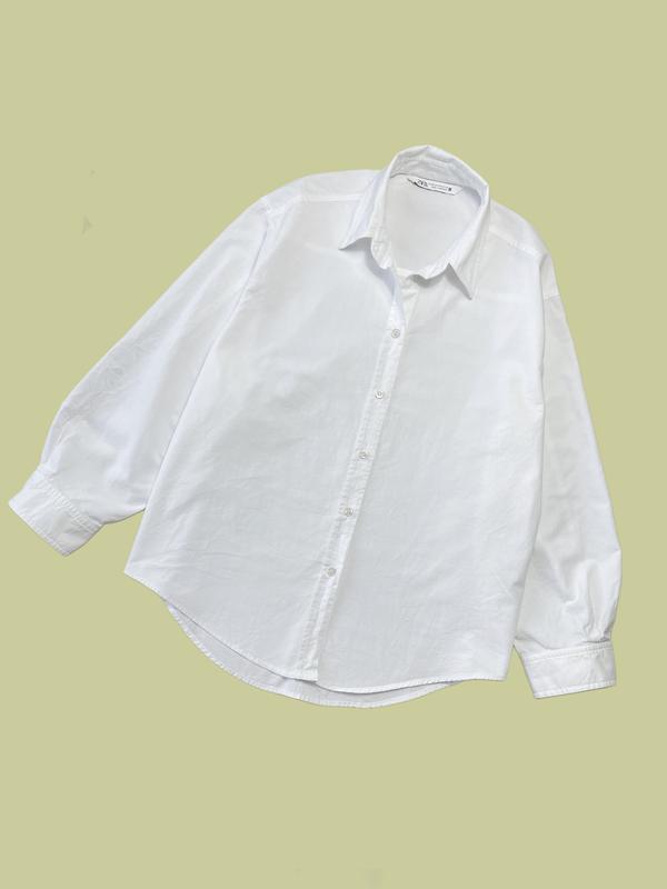 Стильная рубашка Zara Плотный коттон Размер на бирке XS. За счет фасона оверсайз, подойдет и на S, M Пог 61 см Длина 70/73 см Плечи 47 см Рукав 72 см от горловины 100%коттон
