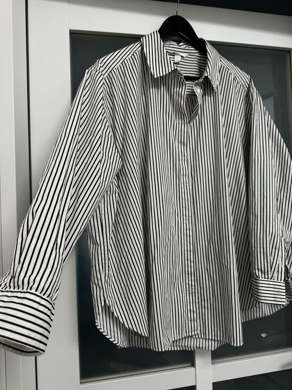 Рубашка в трендовые полоски, объемная, красиво продолжается форма,. Подойдет на размер S и М, посадка оверсайз в идеальном состоянии🔥