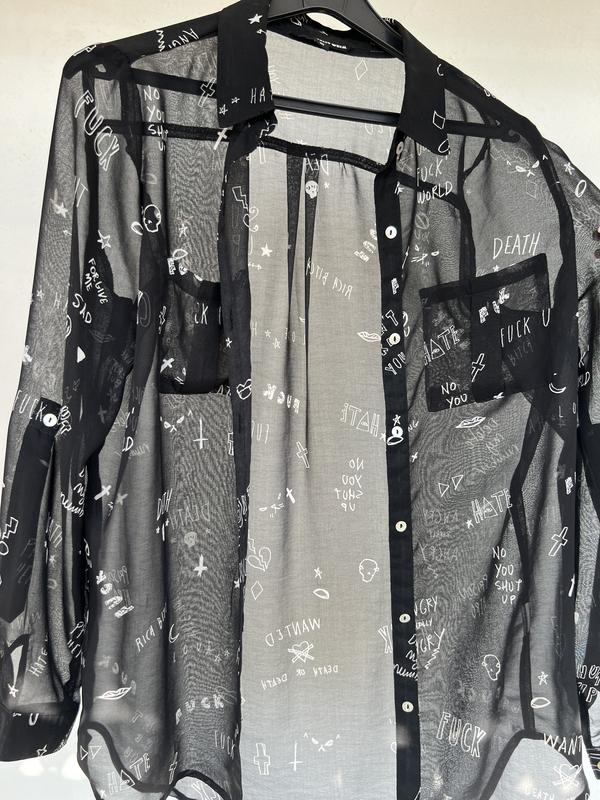 Прозрачная рубашка без дефектов с принтом, на пуговицы.Размер S,M