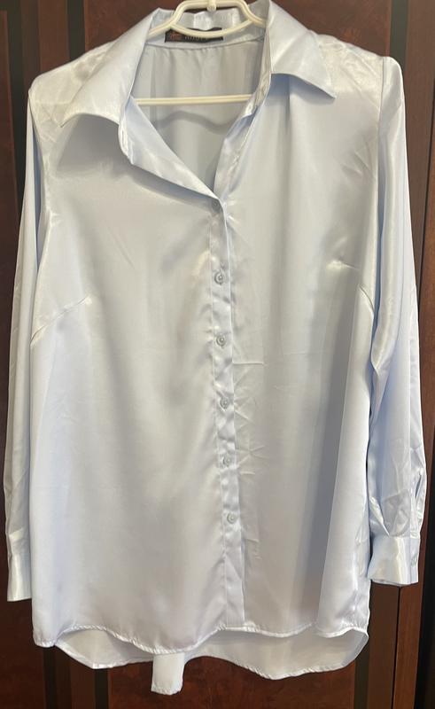 Рубашка женская голубого цвета, искусственный шелк мягкий и приятный к телу. Рубашка шила по заказу, надела несколько раз. Размер XL