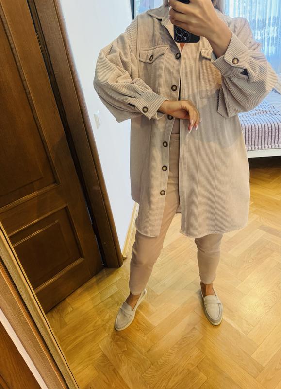 Вельветова сорочка з цікавими рукавами Плечі приспущені, рукав призібраний Має кишені та пояс Можна носити як плаття Підійде на рр від С до Л 90% віскоза Пог 57 Пот 55 Поб 62-63 Довжина спереді і по спинці 89 По боках 75