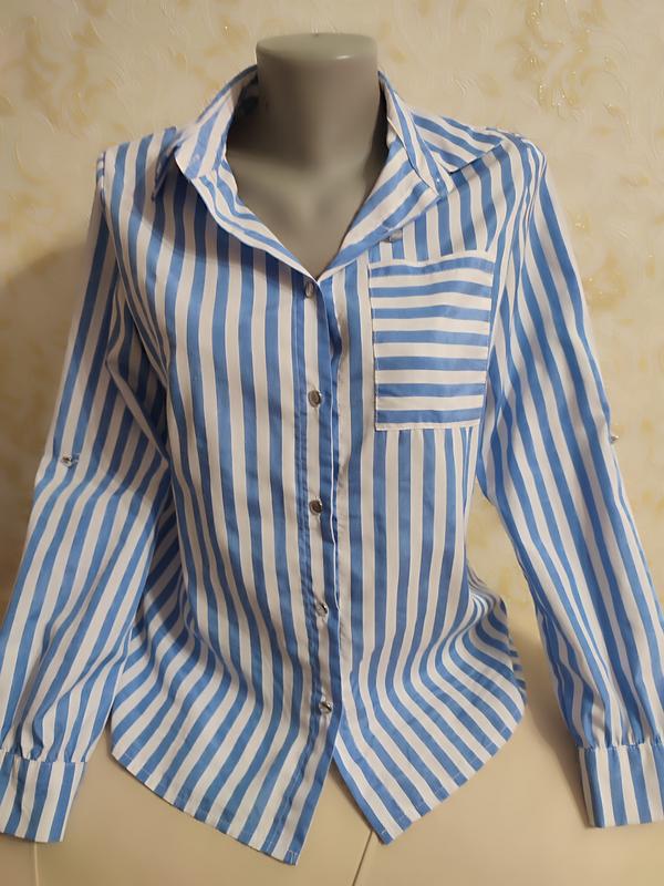 Сорочка в смужку. Длина 62см, плечи 38см, полуобъем груди 47см, полуобъем талии 47см, низ изделия 50см, рукав 59см.