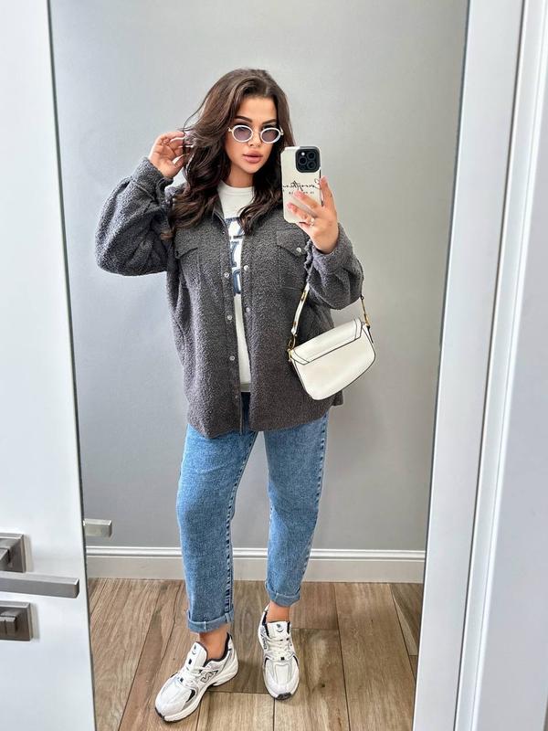 Сорочка-пальто, фото реал 🏷 Цена - 860 грн.✅ ⠀ ▫️Размеры: 46-48, 50-52, 54-56 ▫️Ткань: Барашок на флисе ▫️Цвета: Черный, Коричневый, Графит ⠀ Пальто-рубашка из очень качественного, теплого и приятного на ощупь барашка на флисе с воротничком. Застежка - кнопка в цвет, боковые прошитые карманы, хорошая отделка краев изделия, полномерные. ⠀ Модель 162
