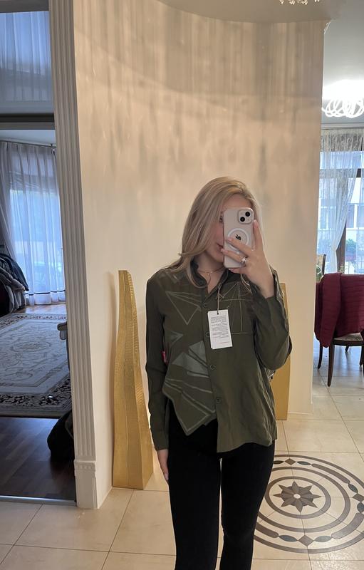 Рубашка украинского бренда Авиация Галичины, новая, с интересным принтом, трендового хаки цвета, асимметричная