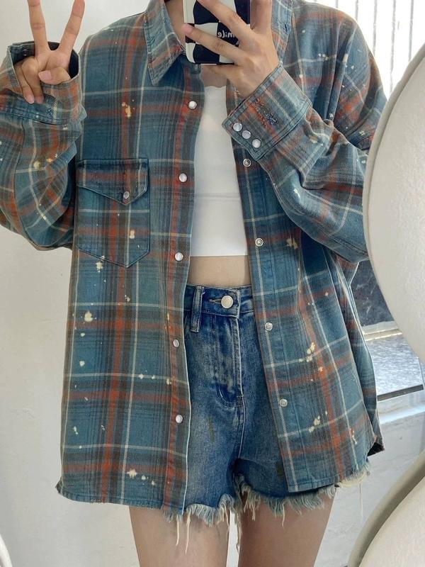 Стильная рубашка в модную клетку с потертостями, свободного кроя✨ Качественная вещь в современном фасоне🔝 Мод: 2475 Размер: м, л Тканина: бавовна Цена 670 грн
