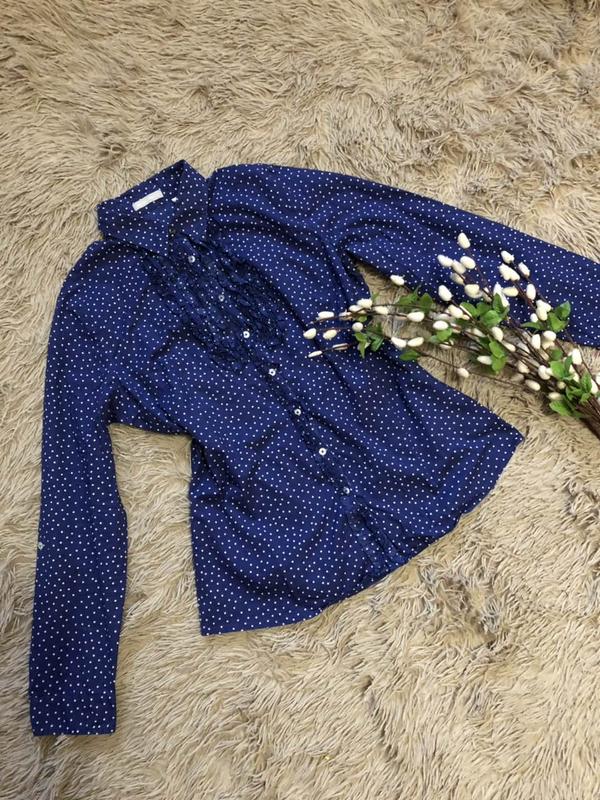 Стильна сорочка в горошок з бавовни,на грудях з невеликими рюшами Піде на розмір Л