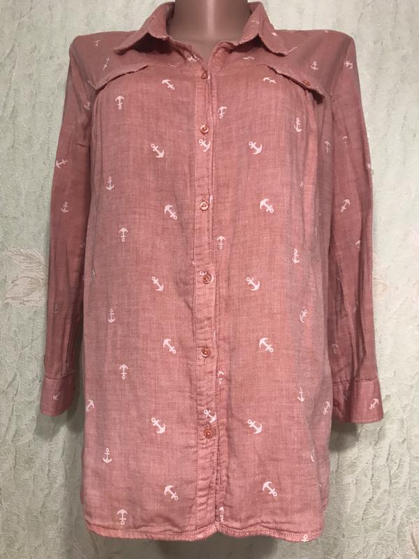 Сорочка-рубашка на 42-44 розм. Довж. (Ззаду 75 см, з переду-67 см, плечі 40, рукав 52 см, Пог 51 см.
