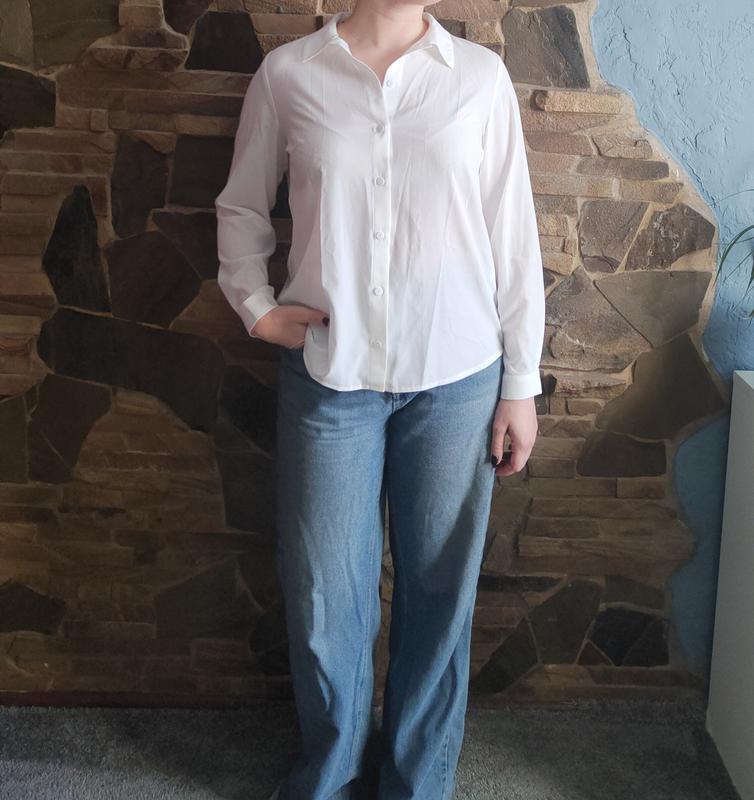 Рубашка белого цвета,свободного кроя.
