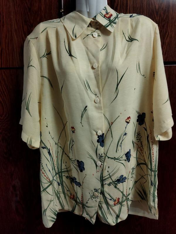 Летняя рубашка. Б/у в отличном состоянии. Секонд (без признаков). Внизу разрезы. Цвет яркий как на втором фото. Ткань плотная, но немного светится.