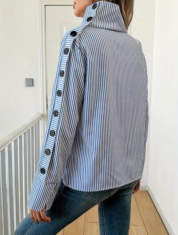 Женская модная, полосатая рубашка с длинным рукавом,комиром,на пуговицах