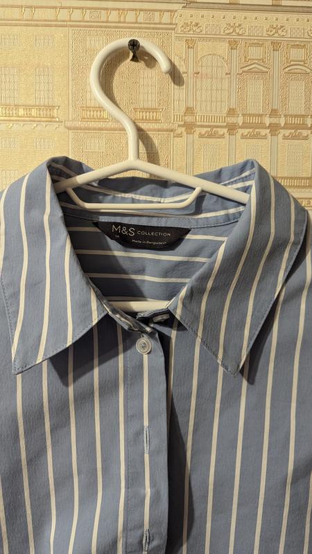 Женская рубашка, голубая с белыми полосками, удобная, официально-головный стиль