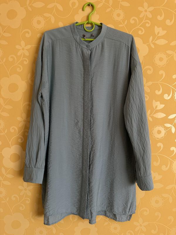 Удлиненная рубашка красивого голубого бирюзового цвета. Очень приятная ткань, особенно на жаркую погоду. Стан - идеальный На наборе написано S, но смело подойдет на полный М