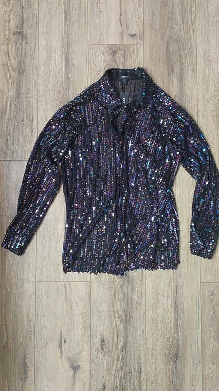 Рубашка в пайетку длина 69 см длина руковая 55 см ог 105 см подойдет на s/m