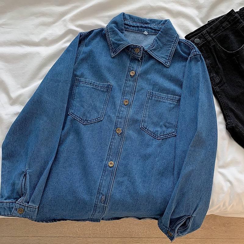 Классическая женская джинсовая куртка-рубашка свободного кроя в двух цветах💙 Мод: 2460 Цвет: голубой, синий Размер: м Тканина: джинс котон