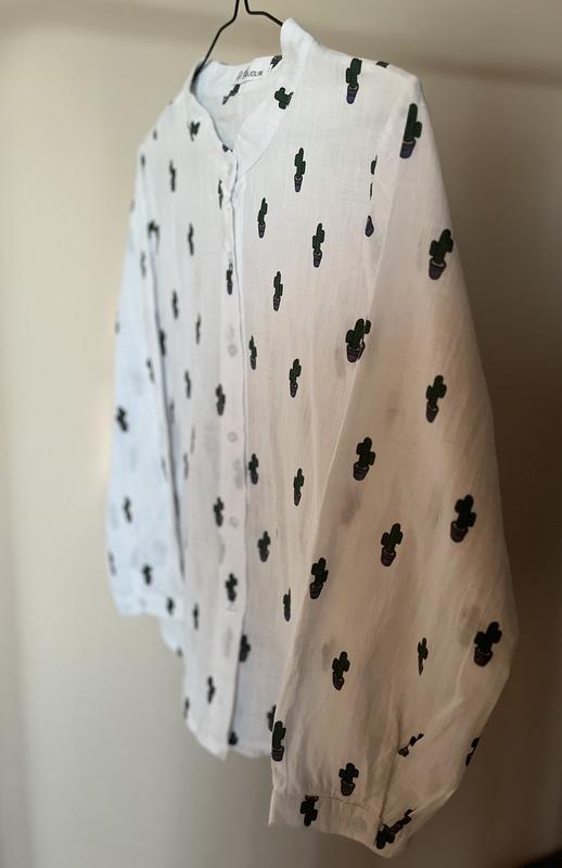 Рубашка с выбитыми на ткани «кактусиками», будет на размер S/M Тканина бавовна По плечах-40 Длина-65 Рукав-53 ОГ-48